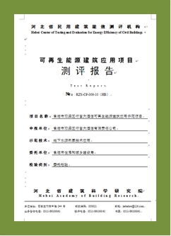 現已開展承德、南宮、寧晉、大名、平泉、任縣、清河、安平等多個國家級可再生能源建筑應用示范項目、示范縣市的300余項工程的測評,測評技術在國內處于領先水平。