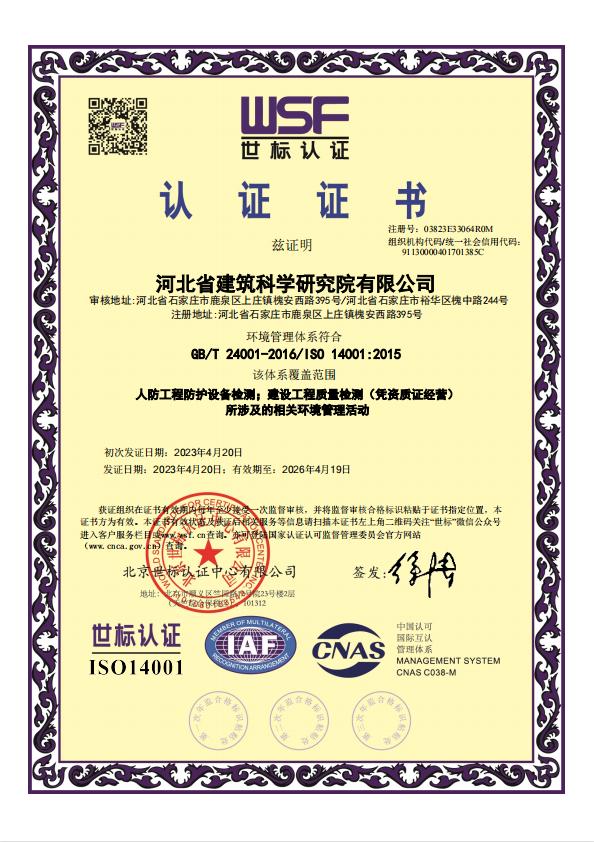 河北省建筑科學研究院有限公司認證證書2