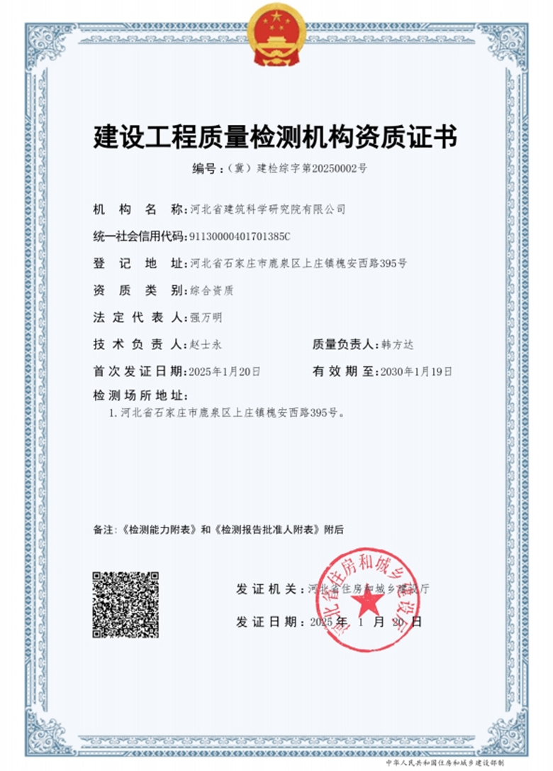 河北省建筑科學研究院有限公司CMA證書